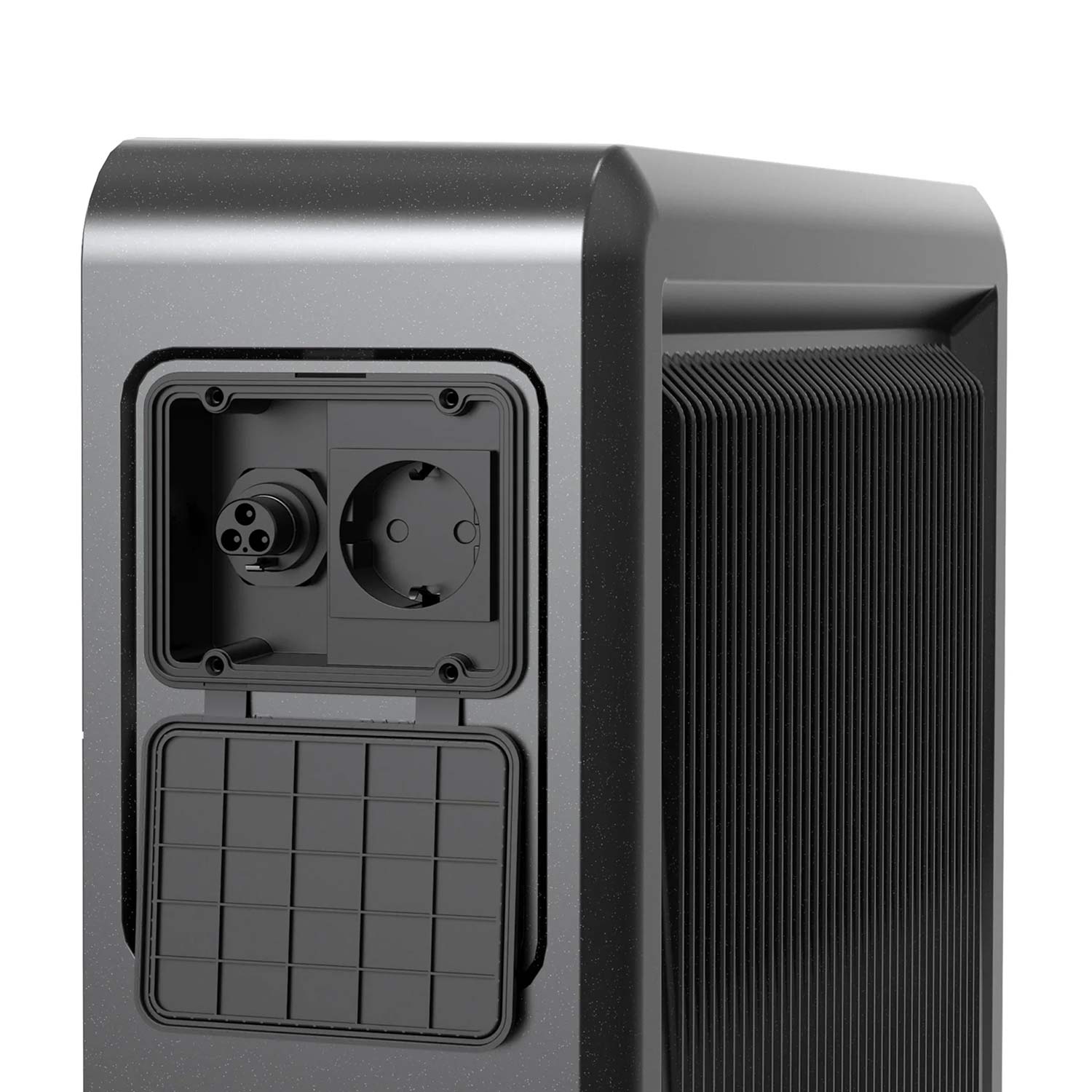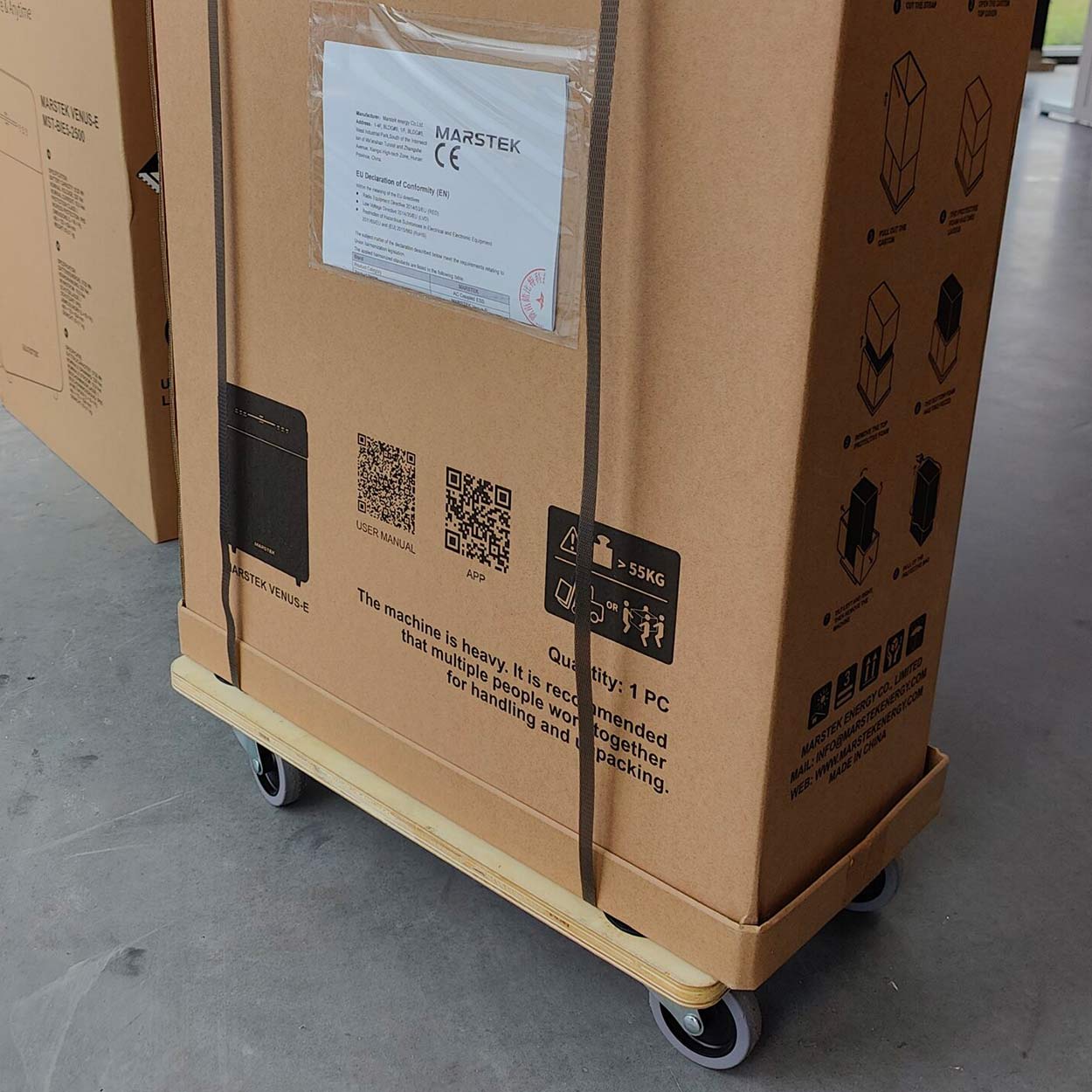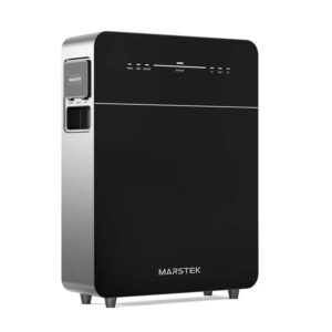 De Marstek Venus E V3.0 is een geïntegreerd systeem, waarbij de omvormer en opslag in één behuizing zitten. Het kan aan de muur gemonteerd worden of op pootjes op de vloer staan.